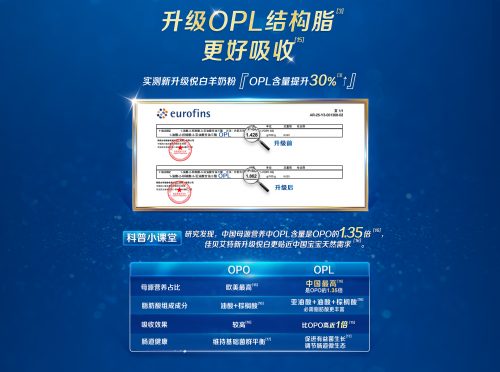 在营养吸收方面,佳贝艾特悦白羊奶粉科学提升了OPL结构脂的含量。OPL结构脂是一种模拟母乳脂肪结构的成分,研究证实其吸收效率优于传统OPO结构脂,可高出近一倍,意味着脂肪能够更高效地被宝宝娇嫩的身体吸收利用,减少了钙皂形成,有助于缓解因消化负担引起的肚肚不适。结合羊奶天然小分、天然A2蛋白的特性,共同构成了佳贝艾特悦白羊奶粉好吸收好消化的协同优势。