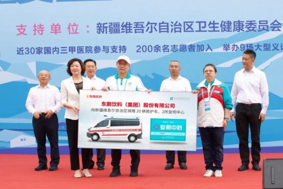 在硬件捐赠方面,双方累计为偏远地区捐建10所乡镇急救室、13所复明中心及100辆救护车,精准解决基层医疗“缺设备、缺场地、缺转运工具”的困境。以2025年“百人援疆”行动为例,东鹏饮料联合韩红基金会为新疆霍城县第一人民医院、布尔津县人民医院捐建2所复明中心,有效提升当地眼科诊疗水平;捐赠的20辆救护车则全部分配至基层乡镇卫生院,为危急重症患者转运、日常医疗巡诊提供保障,有效缩短“生命救援距离”。